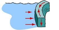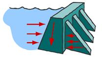 Water pushes against the buttress dam, but the buttresses push back and prevent
