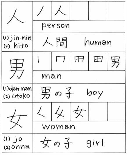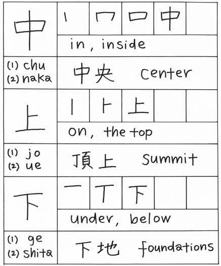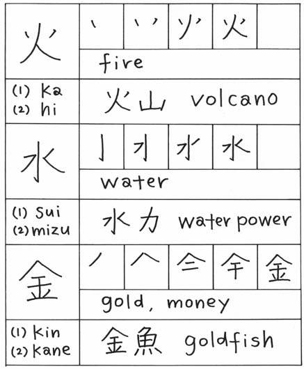 Each kanji character has at least two readings. One is the "on" (Chinese derived) reading, and the other is the "kun" (native Japanese) reading. For example: the word mountain in its "on" reading is "san," but the Japanese also use the native "kun" reading of "yama". Kanji's main use is as the roots of nouns, verbs, and adjectives.