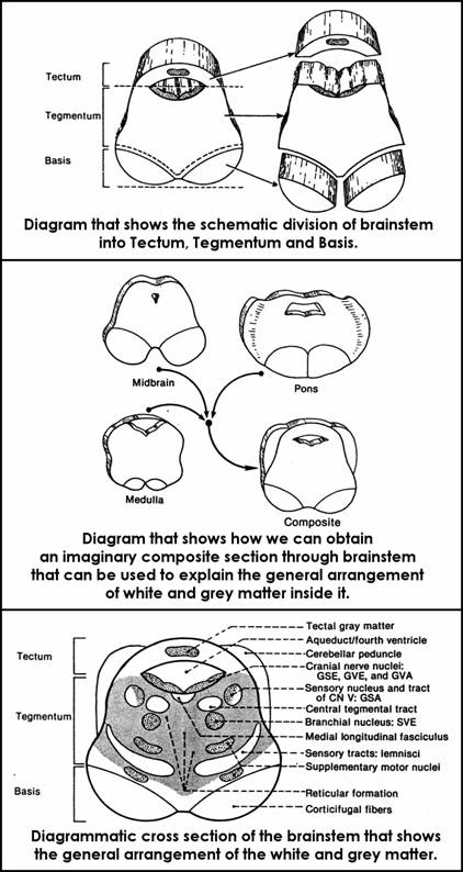It represents that segment of CNS, which is interposed between spinal cord cerebrum and cerebellum. It has an oblique antero-superior position and consists of 3 components which, from inf. to sup. direction are: medulla oblongata (or spinal bulb pons Varolii and midbrain (or mesencephalon
