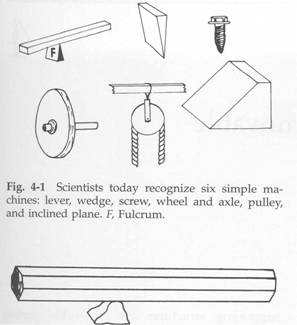Fig. 4-2 Lever is simply a rigid bar supported somewhere between its two ends. It can be used to move objects by application of force (weight) much less than weight of object being moved. |