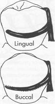 Box and Synge* of Toronto. It seems rational that more periodontal fibers are activated to resist the application of vertical forces to teeth than are activated to resist the application of off-vertical forces (Fig. 4-10). Again, a distal extension removable partial denture rotates when forces are applied to the artificial teeth attached to the extension base. Because it can be assumed that this rotation must create predominantly off-vertical forces, location of stabilizing and retentive components in relation to the horizontal axis of rotation of the abutment becomes extremely important. An abutment tooth will better tolerate off-vertical forces if these forces accrue as near as possible to the horizontal axis of rotation of the abutment (Fig. 4-11). The axial surface contours of abutment teeth must be altered to locate components of direct retainer assemblies more favorably in relation to the abutment's horizontal axis (Fig. 4-12). |