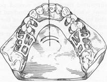 Fig. 4-12 Abutment has been contoured to allow rather favorable location of retentive and reciprocal-stabilizing components (mirror view), This is similar to lower figure in Fig. 4-11, A. |