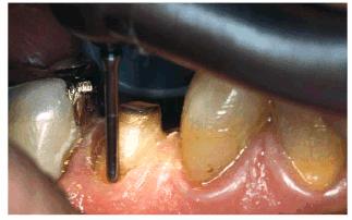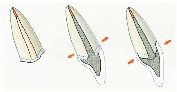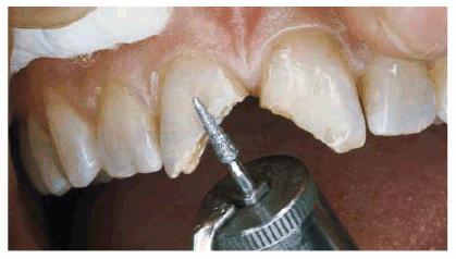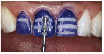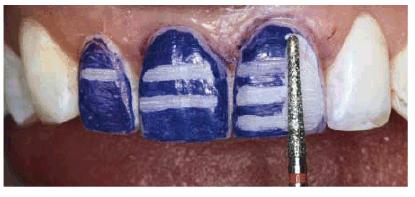 Figur 323s1823d e 18-3C: The two-grit diamond is used to reduce the enamel to the predetermined depth cut.