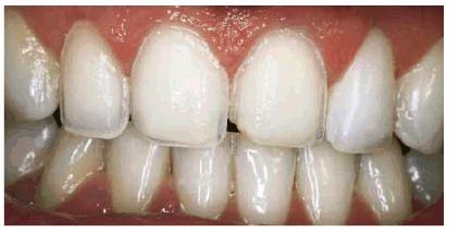 veneers. To help protect the occlusion, porcelain was wrapped incisally to the