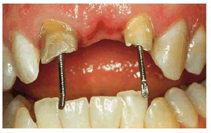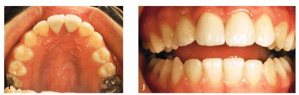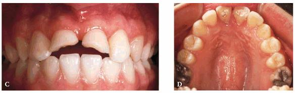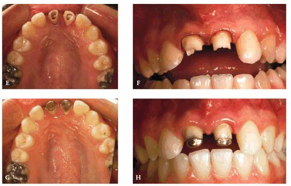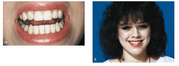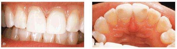Figur 323s1823d e 18-4D and E: The central incisors are bonded with composite resin.