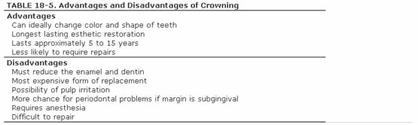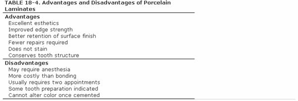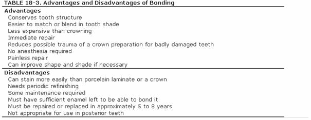 bonding, laminating, and crowns are outlined in Tables 18-3 , and for comparison.12