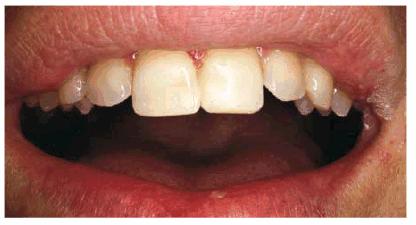 Figur 323s1823d e 18-1A: This 21-year-old girl had chipped her anterior incisors when she was a teenager.