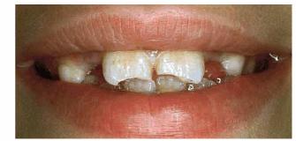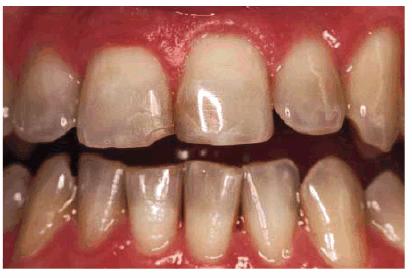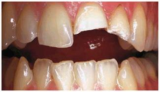 Figur 323s1823d e 18-2A: This teenager chipped her maxillary front teeth.