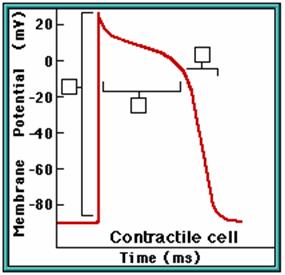 18. (Page 12.) What are the three steps in the action potential in a contractile cell?