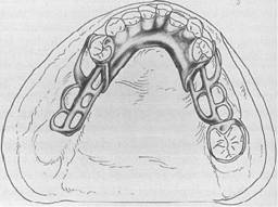 Numerous other types of retainers for partial dentures have been devised that cannot be classified as being primarily of the intracoronal or extracoronal type. Neither can they be classified as relying primarily on frictional resistance or placement of an element in an undercut to prevent displacement of the denture. However, all of these use some type of locking device, located either intracoronally or extracoronally, for providing retention without visible clasp retention. Although the motivation behind the development of other types of retainers has usually been a desire to eliminate visible clasp retainers, the desire to minimize torque and tipping stresses on the abutment teeth has also been given consideration. |