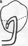 clasp arm may be superfluous unless it is needed as part of the clasp assembly to encircle the abutment tooth more than 180 degrees of its greatest circumference. If the bar clasp arm is made to be flexible for retentive purposes, any portion of the clasp above the height of contour will provide only limited stabilization, because it is also part of the flexible arm. Therefore in many instances this suprabulge portion of a T or Y clasp arm may be dispensed with, and the retentive terminal of the bar clasp should be designed to be biologically and mechanically sound rather than to conform to any alphabetical configuration. A current concept of bar clasp design is the RPI system (rest, proximal plate, I-bar). Basically, this clasp assembly consists of a mesioocclusal rest with the minor connector placed into the mesiolingual embrasure, but not contacting the adjacent tooth (Fig. 7-41, A). A distal guiding plane, extending from the marginal ridge to the junction of the middle and gingival thirds of the abutment tooth, is prepared to receive a proximal plate (Fig. 7-41, B). The buccolingual width of the guiding plane is determined by the proximal contour of the tooth (Fig. 7-41, A and C). The proximal plate, in conjunction with the minor connector supporting the rest, provides the stabilizing and reciprocal aspects of the clasp assembly. The I-bar |