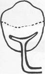 Fig. 7-38 Half-and-half clasp consists of one circum ferential retentive arm arising from distal aspect and a second circumferential arm arising from mesial aspect on the opposite side, with or without secondary occlusal rest. Broken line illustrates nonretentive reciprocal clasp arm used without secondary occlusal rest (mirror view). |