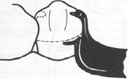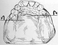 Fig. 7-46 Bar clasp arm properly used on terminal abutment. Mesial extension of T is neither advantageous nor desirable in this situation &cause abutment tooth was encompassed more than 180 degrees. |