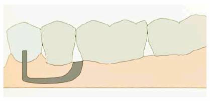 and cross interdental spaces to adjacent teeth as a fine, radiopaque white line.