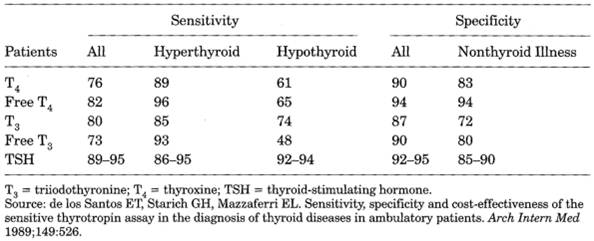 suspicion of thyroid disease (overall yield ~0.5%; varies from 0% in young