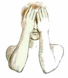 First look up, then look down. Now look to the far right and then look far left. Next look up to the right, then look diagonally downward to the left. Repeat in the opposite direction. Now imagine a large clock - look up at 12 o'clock, then circle around it clockwise, quite slowly for two rounds then quicker for three. Repeat the exercise in an anti clockwise direction. Lastly, hold your thumb up about a foot from your face, and move your eyes from the thumb to the wall beyond and back. To end always "palm" your eyes as shown below.