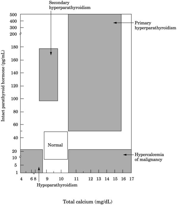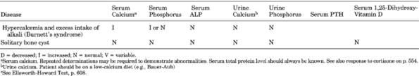 (<70% that of age-matched normals), very increased 24-hr urine calcium