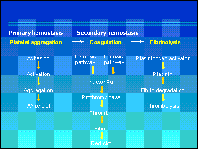Hemostasis is a complex physiological balance to prevent bleeding and excessive clotting (thrombus formation). It results from the dynamic interaction between the vascular wall, platelets and the processes of coagulation and fibrinolysis.