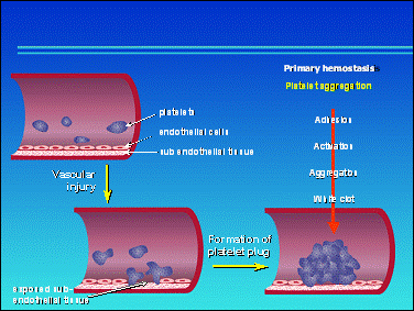 Primary hemostasis requires a dynamic change in the behavior of blood platelets so that they are able to bind to the damaged surface of the blood vessel. This process takes place in three phases: platelet adhesion, platelet activation and platelet aggregation.