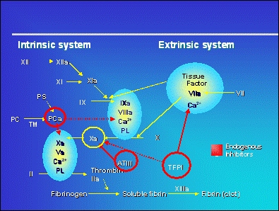 Many activation and inhibition loops ensure regulated control of coagulation so that formation of the blood clot or thrombus remains within the limits of the vascular lesion and does not grow unnecessarily large and form a blockage.