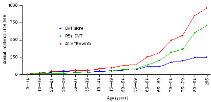 Silverstein MD, Heit JA, Mohr DN, et al. Trends in the incidence of deep vein thrombosis and pulmonary embolism: a 25-year population-based study. Arch Intern Med 1998; 158:585-93.