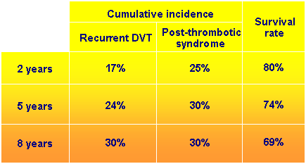 Prandoni P, Lensing AWA, Prins MR. Long-term outcomes after deep venous thrombosis of the lower extremities. Vasc Med 1998; 3:57-60.