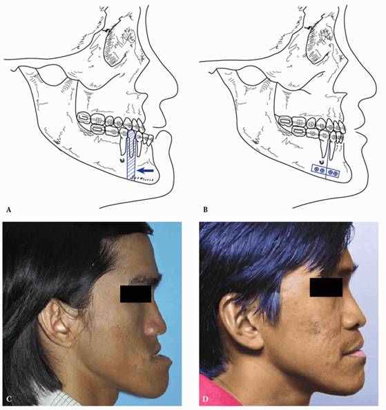 Figure 26-19: Advancement genioplasty by intraoral sliding horizontal osteotomy of the symphysis.