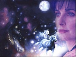 Epona was revered as the Horse Goddess and is portrayed with birds as well as horses, with a bag or cornucopia. She is closely identified with Rhiannon. Her birds are reputed to lull the living to sleep and to awaken the dead. Roma Ryan, in Enya's The Celts CD booklet. |