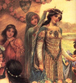 Guinevere is crowned Queen of May with a garland. In the May Festival, Arthur and his knights held games and tournaments. |