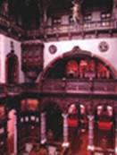 Its decoration borrowed elements from the Hispanic-Moorish style, the ceiling and the walls being adorned with arabesques of polychrome gold plated stucco. In the hinder part of the hall there is a well made of marble of Carrara, a replica of a piece, placed at present in a mosque of Cairo.