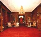 The walls are paneled on the lower half and covered with leather of Cordoba