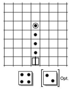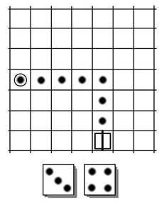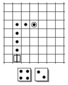 For the draught to the right or to left you must throw first a die and they are counted the squares in ahead, then throw the second die and they are counted the squares to the right or to left, like select.