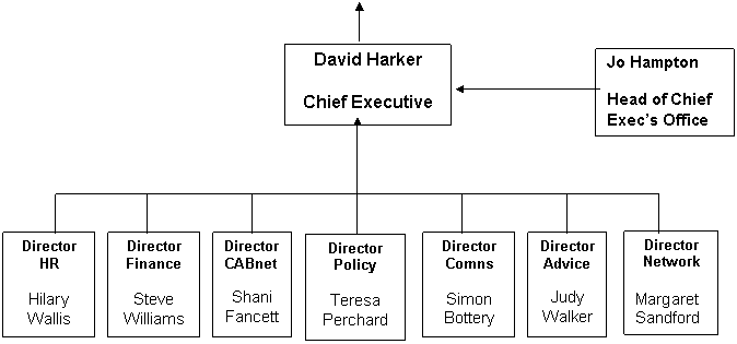 This comprises the Chief Executive together with seven Executive Directors of HR, Finance, CABnet, Communications, Policy, Advice and the Network.
