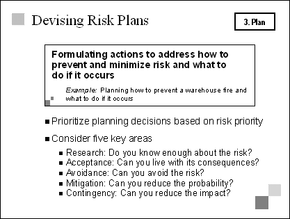 n Devising risk plans is the next step that turns information into decisions and actions.
