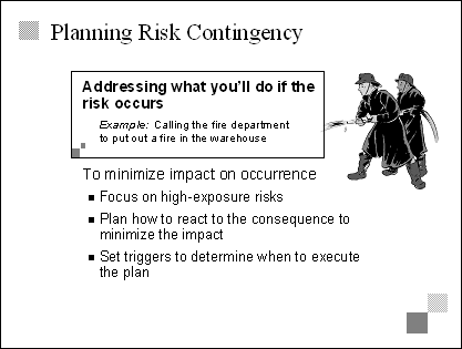 Explain Contingency triggers are an important part of any contingency plan. Without triggers, any plan is incomplete. Emphasize It isn't enough to plan how you will react; you also need to decide ahead of time when you will react. |