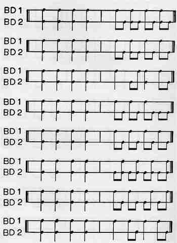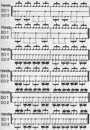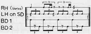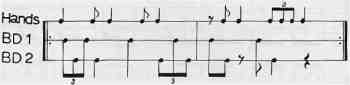 second bass drum using eighth and sixteenth note triplet combinations. See