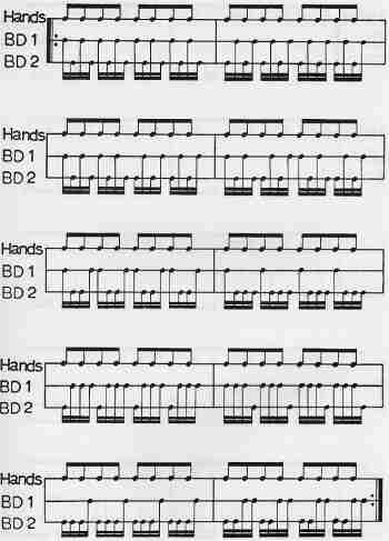 Experiment with my exercises and try to develop some of your own. Eventually, you will develop a style of Double Bass drumming that you can call your own. And that's where the fun really begins.