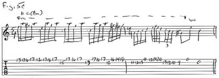 What are some of the things you remember practicing that really focused on developing your right hand? Yngwie Malmsteen: Well, you know, here's the funny thing: I never did that. I never did that "practicing" thing, I just sorta played. And if I could play something legato [plays Fig. 1A]-that's without the right hand-I'd want to be able to play exactly the same thing with the right hand [plays Fig. 1B] and make it so it's completely coordinated and clean. And I remember at some point I got kinda bored with guitar players that play like [plays Fig. 2A], so I thought up different variations, like this [plays Fig. 2B]. That's all on the E string. It's kind of a long stretch with your hand, but it's all on one string. You can do a lot of things like that [plays Fig. 2C]; the possibilities are endless. But I don't think that I had any particular "practice" approach or anything like that. Sometimes I'd play through scales, and then I'd do the arpeggios after, different string skipping and all that stuff. But I never really had a particular thing-one or two, or different warm-ups, or anything like that. It was just "playing," really. I know it's stupid, but it's true [laughs]. Wow. You must've just played a lot. Yngwie: Yeah, exactly. I improvised all the time. You're singlehandedly responsible for introducing a lot of classical motifs into the modern rock guitar vocabulary. Can we go over some of your trademark licks? Yngwie: You mean, for instance, the arpeggios [plays Fig. 3A]? That's a trademark, two-octave A minor arpeggio. And you can actually add the [minor] 3rd, C (20th fret, 1st string), by tapping with your right hand [plays Fig. 3B] I do something crazy like that on Alchemy, on a song called "Playing with Fire." On the subject of arpeggios, if you're playing in A minor and you're gonna do one of your diminished arpeggios over an E chord... Yngwie: Yeah. You can do that a lot of different ways. It all depends on what effect you want. You can start off on G# or B, and it can go up like this, for instance [plays Fig. 4] The diminished arpeggio is very dramatic. Now how about... Yngwie: Pedal tones, like Bach. You can either do a pedal on the E string like [plays Fig. 5A], then [plays Fig. 5B] There are a lot of different things you can do using that approach [plays Fig. 5C] And then, to finish it off, you can do a harmonic minor run [plays Fig. 6] That stuff, it's all over Alchemy actually, the whole thing. |