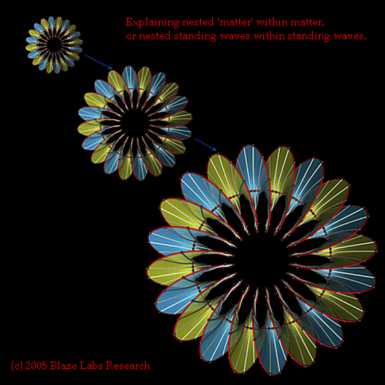 The figure above, is a much better scientific explanation of the origin of matter and what one would expect to get when bombarding matter in particle accelerators. It also solves the enigma of the point particles. Nobel laureate Paul Dirac, who developed much of the theory describing the quantum waves of the electron, was never satisfied with the point-particle electron because the Coulomb force required a mathematical correction termed renormalization. In 1937 he wrote, This is just not sensible mathematics. Sensible mathematics involves neglecting a quantity when it turns out to be small not neglecting it because it is infinitely large and you do not want it! [P. A. M. Dirac, Nature, 174, 321, p 572 (1937)]. The below figures is basically what present books teach (not a joke).