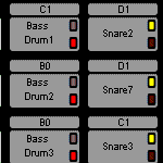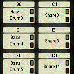 mix, setting up different drum kits on different rows (with similar drum sounds