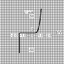 The variation with potential difference V of the current I in a semiconductor diode is shown below.