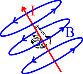 the magnetic field lines wrap around the wire. By pointing one's right thumb