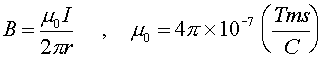 strength of the magnetic field depends on the current I in the wire and r, the distance from the