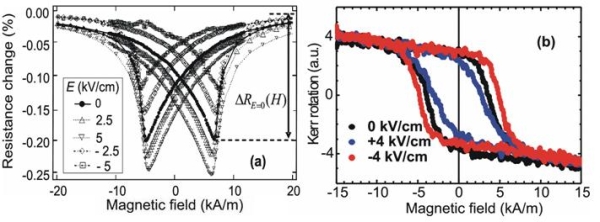 zirconate titanate (PZT) substrate. (b) The voltage-induced change in magnetic