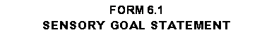 When instructed to do so by the narrator, translate your statement of purpose into a Sensory Goal Statement. Use the space provided below. The statement should specifically state what you want to achieve, when you want to achieve it, and specify a measure to let you know when you have achieved it.