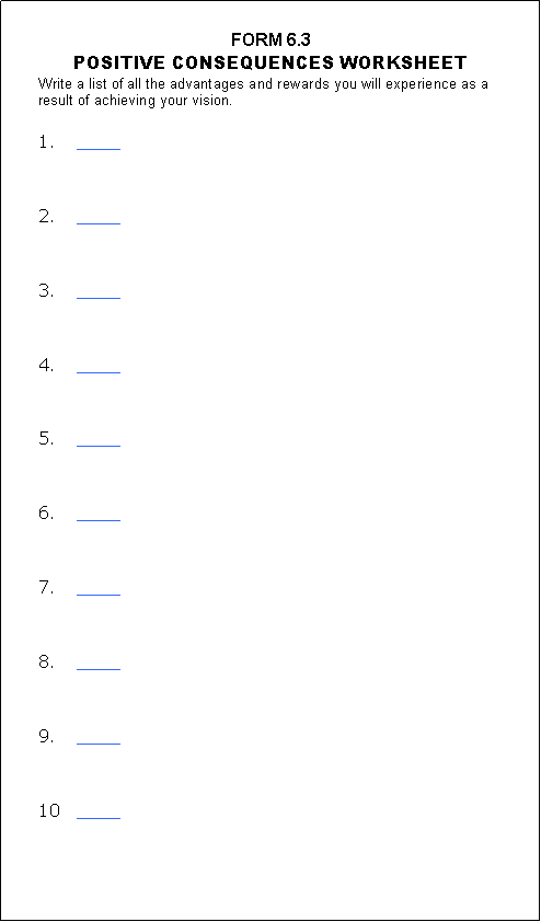 When instructed to do so by the narrator, complete Form 6.3 'Positive Consequences Worksheet."