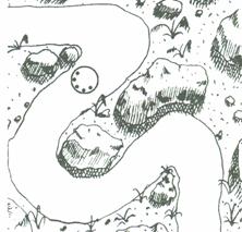 The large outer circle is the body of the agent and the small inner circles are internally mobile so they may rearrange in new patterns or even disappear and reappear. The expressions are determined by four parameters: activation, externality, precision, and focus. These small circles are then one way for the agent to express its state by rearranging them in different ways. The other way is to adjust its speed and how well it stays on the track of a small predetermined route showed in Figure 14 below. For example a frightened agent will move quickly and have its small circles close by each other in the inner of the body. A sad agent will move slowly in contrast.