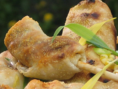 Place pogos on the grill and cook on each side until golden brown, approximately 12 minutes, turn pogos often. Remove from heat and serve immediately.