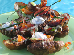 Preheat barbeque to 220°F/104°C or medium high. Place potatoes over well oiled grill.