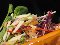 small head green cabbage, sliced Julianne Chop first 4 ingredients into a bowl. |
